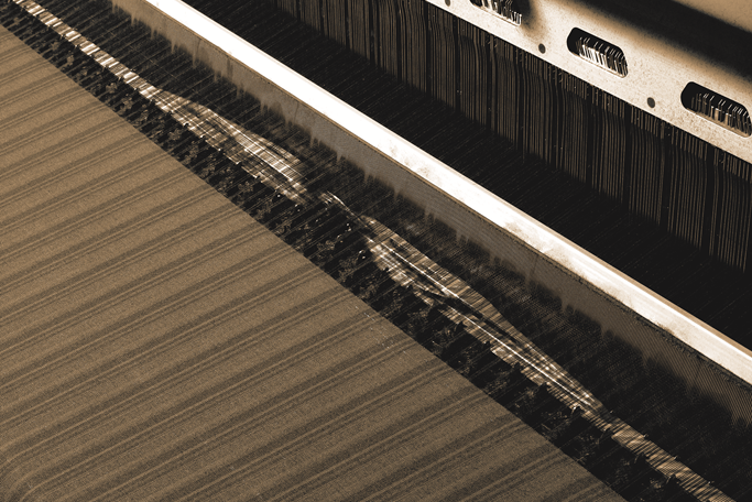 The first step to our fabric manufacturing process is crucial and paves the way for a clean and steady system. The wool must be cleaned and scoured, as raw wool materials contain lanolin, a compound that makes the material very oily to the touch. This scouring process involves soaking the wool in hot water, basic compounds, and other biodegradable surfactants to cleanse the wool of all impurities and dirt, ensuring the wools purification.